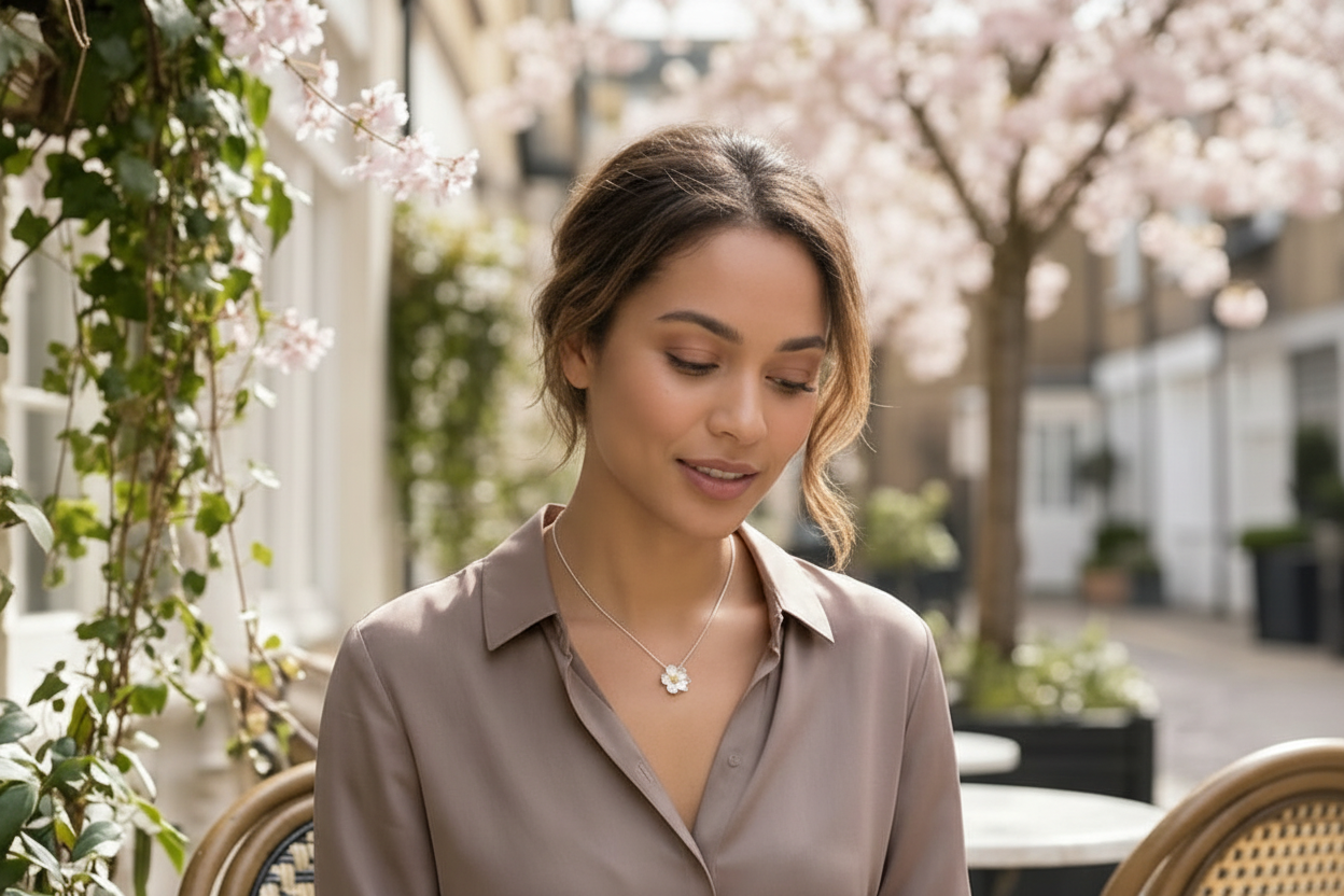 Cherry Blossoms Pendant 925 Sterling Silver Chain Necklace Women Jewellery Gifts